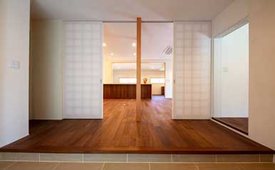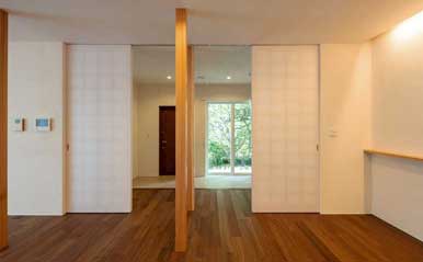 太鼓張りの障子の向こうは、家族のダイニングとキッチン。