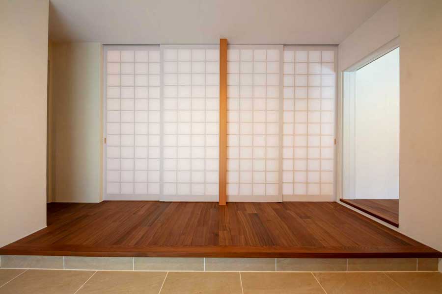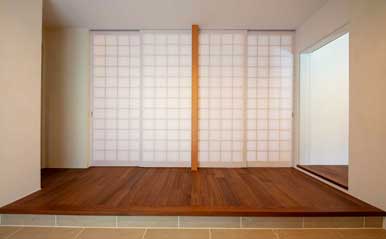 天井までの障子が光を通すので、締め切っても室内が孤立しません。