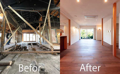 長い歴史の間に数度におよび増改築を重ねた古家は、間取り・構造・配線・配管・屋根に到るまで、迷路のような状態でした。