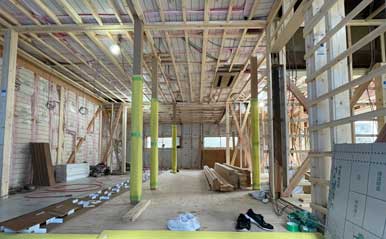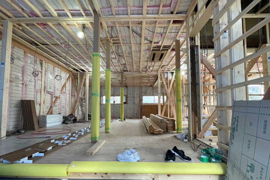 木工事が終了すると室内では珪藻土が、外部では外壁の仕上げにかかります。