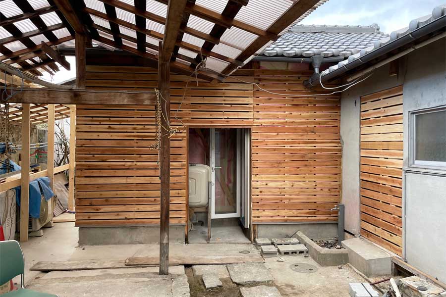 今回は掃き出し窓周辺以外の外壁は工事対象としない方針でしたが、工事途中に必要性が明確になりました。