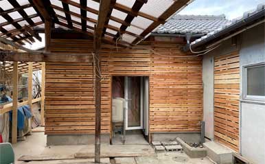 建築主が母屋に暮らしながらの工事で生活への影響が最少になるよう、解体工事には慎重を要しました。