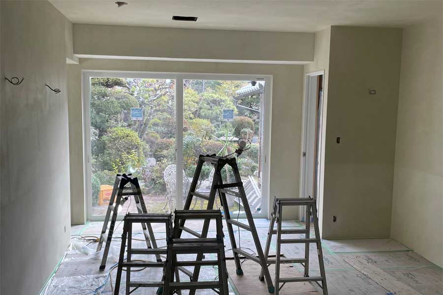 水栓やエアコン、照明器具が付き、美装工事が済むと、工事現場は家に変貌します。