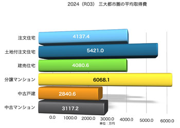 最も大きな資金を要したのは新築分譲マンションで、6068万円。