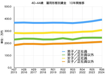 グラフ1 40-44歳の雇用形態別賃金 10年間の推移